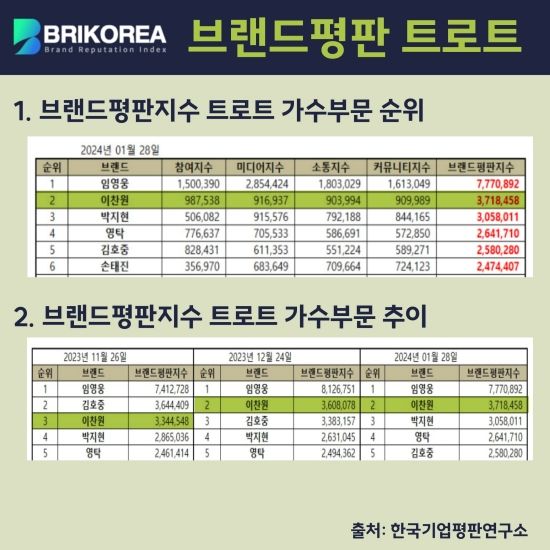 '찬또배기' 이찬원, 1월 트로트 가수 브랜드평판 TOP2