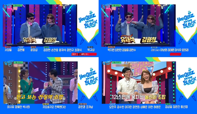 앞서 '유 퀴즈 온 더 블럭'은 지난 24일 방송인 김원희의 출연을 예고했다. 김원희는 유재석과 MBC 예능프로그램 '공감토크쇼 놀러와' 등을 함께 진행했던 만큼 두 사람의 '케미'에 관심이 집중됐다. 더욱이 두 사람은 이번 '유 퀴즈 온 더 블럭'을 통해 12년 만에 재회한 것으로 알려져 화제를 모았다.