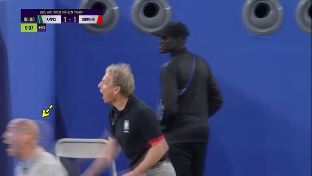 클린스만 감독은 31일 오전 1시(한국 시각) 카타르 알라이얀 에듀케이션 시티 스타디움에서 열린 2023 아시아축구연맹(AFC) 카타르 아시안컵 16강전 사우디아라비아와 대한민국의 경기에서 후반 54분 조규성이 극적인 동점골을 넣자, 자리에서 일어나 기쁨을 표했다.