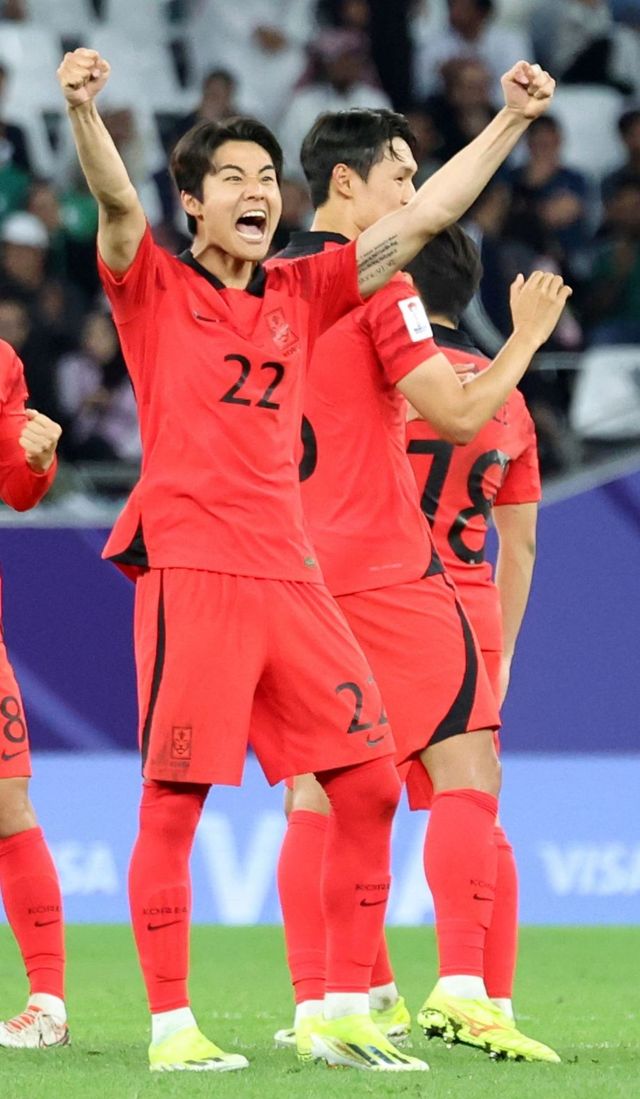 사우디아라비아전 조현우 승부차기 선방에 크게 환호하는 설영우. / 뉴스1