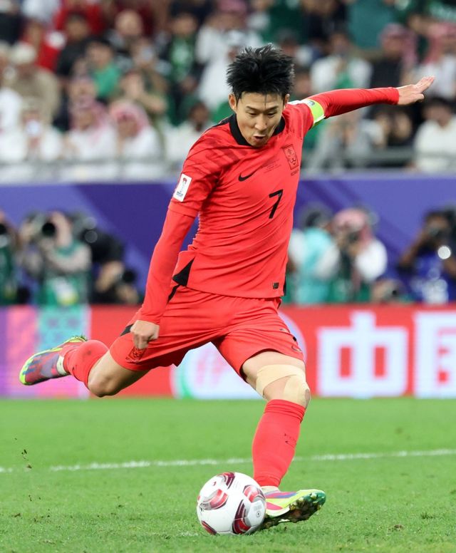 사우디아라비아전에서 승부차기 성공하는 손흥민. / 뉴스1