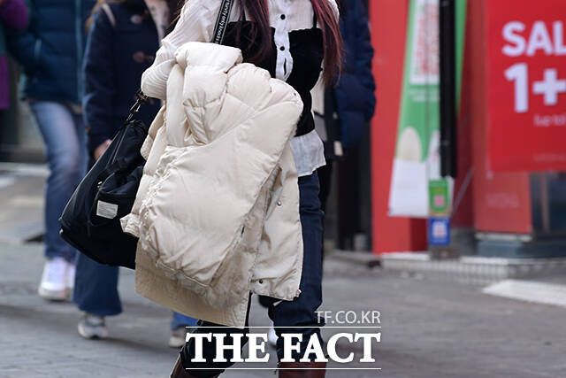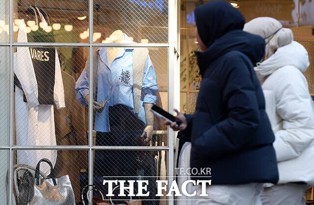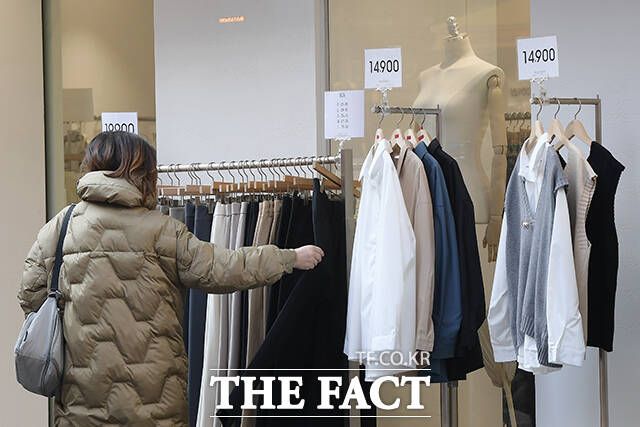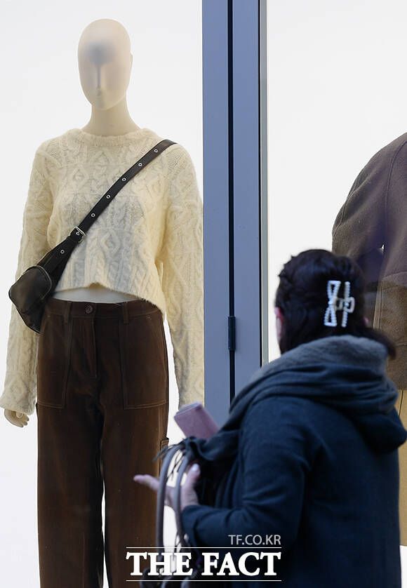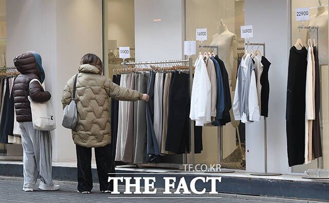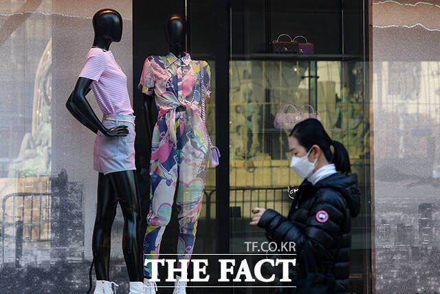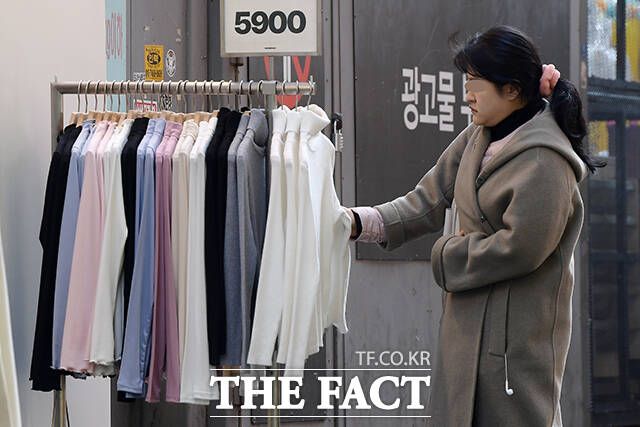 [더팩트ㅣ서예원 기자] 고기압 가장자리 영향을 받으며 초봄 수준의 포근한 날씨를 보인 31일 오전 서울 중구 명동거리 한 상점에 봄옷이 진열돼 있다.