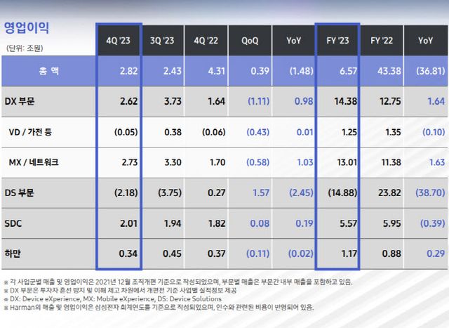 시스템LSI 사업은 스마트폰 재고 조정이 마무리되면서 부품 구매 수요가 증가하고 ‘엑시노스 2400’이 주요 고객사 플래그십 모델에 적용되면서 3분기 대비 매출과 손익이 모두 개선됐다.