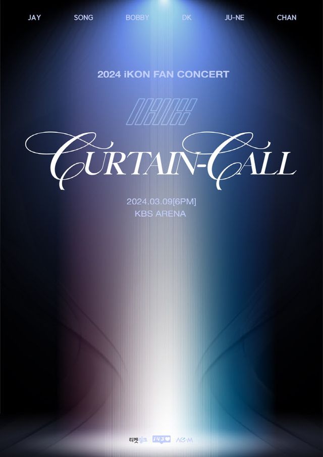 소속사 143엔터테인먼트에 따르면 아이콘은 3월 9일 서울 강서구 KBS 아레나에서 팬 콘서트 ‘커튼 콜’(CURTAIN-CALL)을 개최한다.