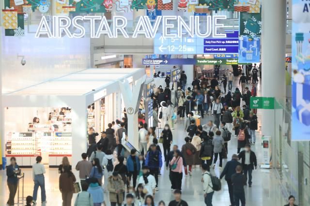 仁川国际机场出发大厅内的旅客们。【图片提供 韩联社】