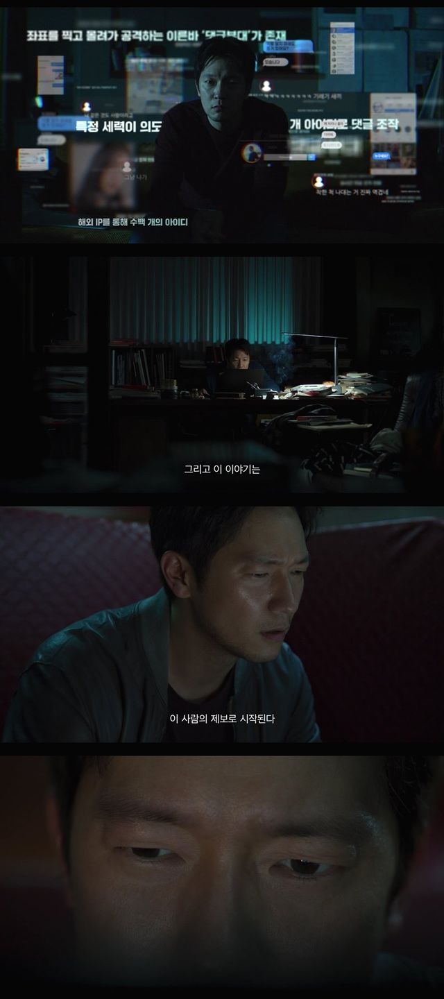 마지막으로 “이 이야기는 이 사람의 제보로 시작된다” 는 ‘임상진’의 의미심장한 내레이션은 앞으로 펼쳐질 예측 불가한 전개에 대한 서스펜스를 극대화하며 웰메이드 범죄 드라마의 탄생을 예고한다. 특히 ‘댓글부대’는 인터넷 기사, 각종 커뮤니티와 소셜 네트워크 서비스(SNS)를 일상적으로 사용하는 현대인이라면 누구나 생각해 봤을 온라인 여론 조작이라는 현실적인 소재로 몰입도를 끌어올린다.