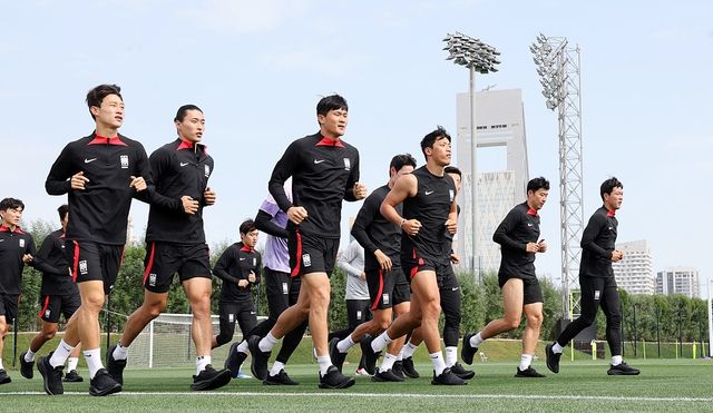 축구 대표팀 선수들이 카타르 도하 알 에글라 트레이닝 센터에서 훈련하고 있다. / 뉴스1