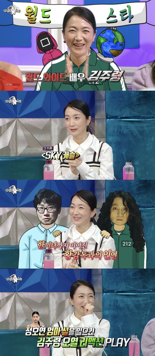 넷플릭스 시리즈 '오징어 게임'을 통해 월드 와이드 배우로 우뚝 선 김주령은 시종일관 겸손하고 수줍은 리액션으로 웃음을 선사했고, 춤과 노래 실력까지 뽐내며 반전 매력을 드러냈다.