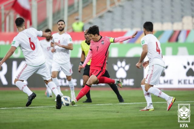 지난 2021년 10월 이란 테헤란 아자디 스타디움에서 열린 이란과의 월드컵 최종예선 경기 모습. 당시 오만 국적의 알카프 주심은 한국의 마지막 코너킥 기회를 주지 않고 그대로 경기를 종료 시켰다. 사진=대한축구협회