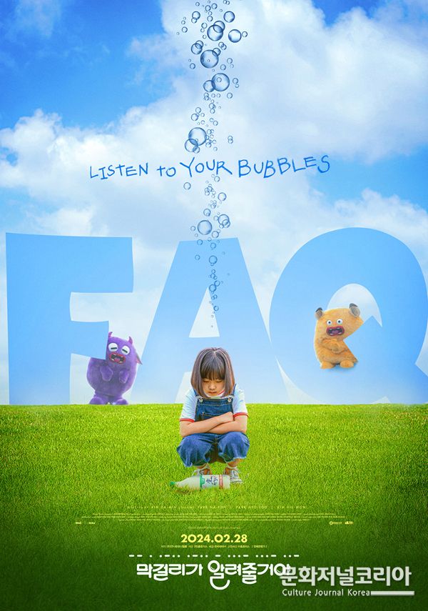 바닥에 놓인 막걸리병을 가만히 바라보는 ‘동춘’의 머리 위로 뽀글뽀글 피어오르는 기포와 '막걸리가 알려줄거야'의 영문 제목 “FAQ”, “Listen to Your Bubbles”라는 카피가 말하는 막걸리와의 판타스틱한 모험을 예고하며 관객들의 호기심을 자극한다.