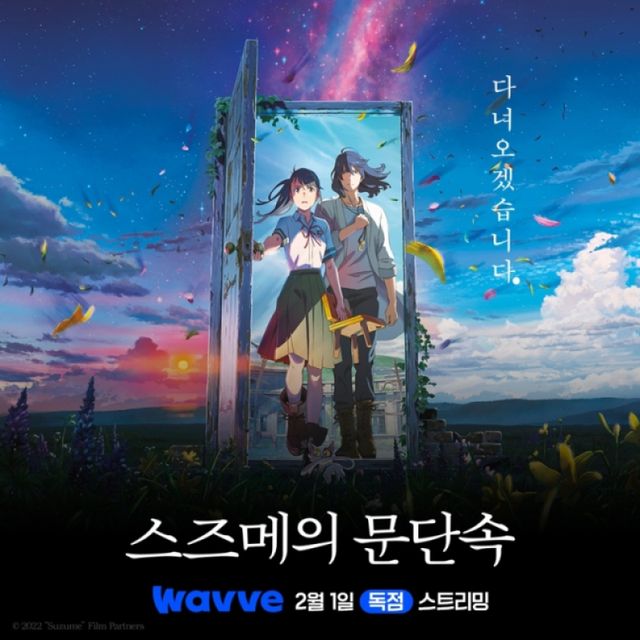 스즈메가 웨이브에 떴다. 지난해 3월 개봉한 영화 ‘스즈메의 문단속’이 1일 웨이브에서 독점 공개됐다.