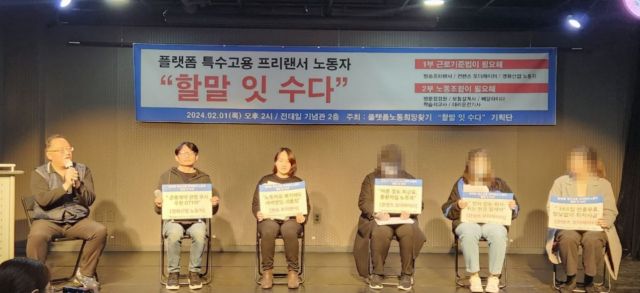 정 씨와 같은 콘텐츠 모더레이터를 비롯해 영화산업 노동자, 방송 프리랜서, 방문 점검원, 배달 라이더, 대리 운전기사, 보험 설계사, 학습지 교사 등 한국 사회의 대표적인 플랫폼·특수고용·프리랜서 노동자들이 1일 서울 종로구 전태일기념관에서 열린 증언대회 '플랫폼·특수고용·프리랜서 노동자들의 '할말잇수다''에 참여했다.