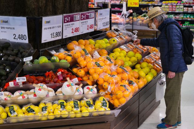 ▲1일 서울 시내 대형마트 수입 과일 판매대에서 시민들이 과일을 고르고 있다. 2일 통계청이 발표한 '1월 소비자물가동향' 자료를 보면, 지난달 소비자물가지수는 113.15(2020년=100)를 기록해 전년 동월 대비 2.8% 올랐다. ⓒ연합뉴스