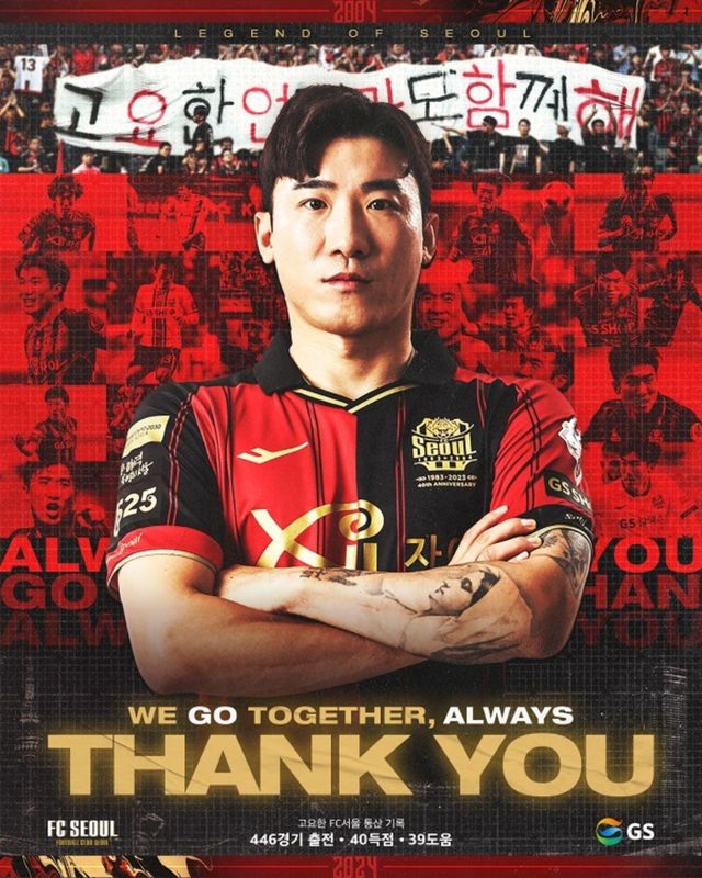또 "2024시즌 홈경기 중 선수 본인과 FC서울 팬들의 기억에 남을 성대한 은퇴식과 영구 결번식을 통해 그동안의 헌신에 감사를 전할 것을 약속드린다"고 강조했다.