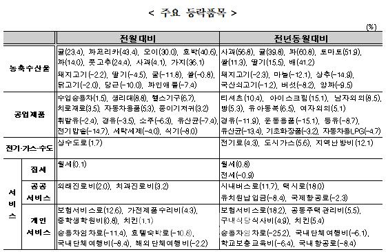 ◇농산물 15.4%↑…“사과·배 올라 귤 물가도 상승”