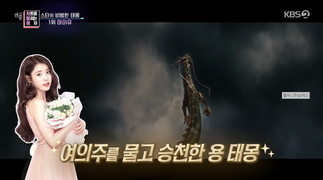 이어 아이유의 "다른 태몽은 바로 용꿈이었다. 꿈에 두 마리의 용이 등장했고, 이긴 용이 여의주를 물고 하늘로 승천했다"는 말에 전문가는 “용이 승천하는 건 공인이 된다는 뜻이며, 여의주를 물고 있는 게 정점이다. 반박 불가, 비교 불가 지존의 꿈”이라고 극찬했다.