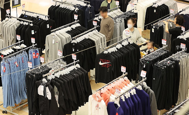 上月5日,在首尔某大型超市陈列销售的服装。【图片提供 韩联社】