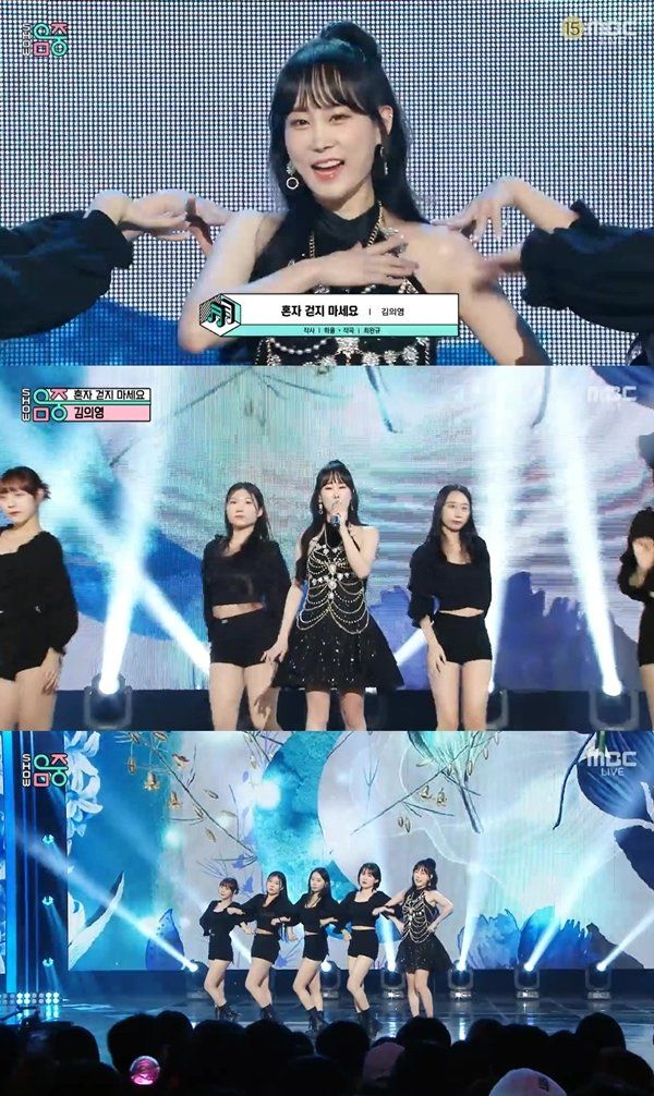 김의영은 지난 3일 방송된 MBC '쇼 음악중심'에 출연해 신곡 '혼자 걷지 마세요'의 컴백 무대를 꾸몄다. 이날 오프닝을 연 김의영은 블랙 홀터넥 드레스에 금빛 액세서리를 매치, 시크하면서 세련된 무드로 시선을 사로잡았고 떠나가는 이를 잡는 듯한 매혹적인 퍼포먼스와 함께 진한 감성을 드러내며 반전 매력을 뽐냈다.