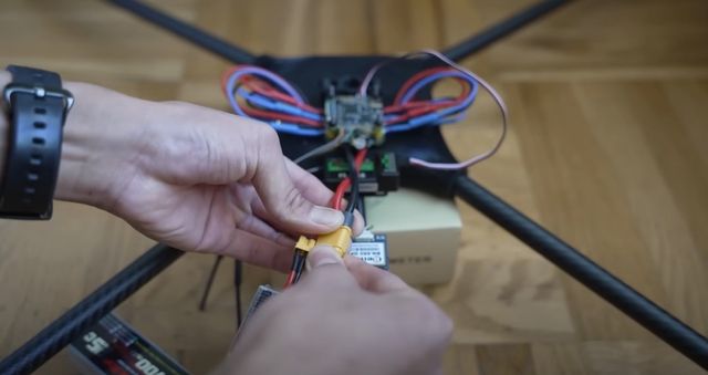 이 날아다니는 우산 밑에 숨은 드론 역시 그가 직접 제작한 것이다. 프레임의 튜브는 무게를 줄이기 위해 탄소 섬유로 제작했으며, 모터와 프로펠러를 장착한 튀어나온 부분은 3D 프린팅을 이용했다.