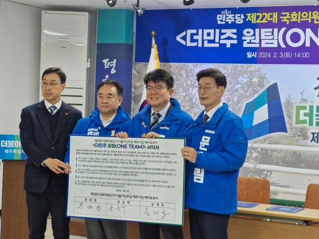 [한라일보]4·10총선에 제주시갑으로 출마를 선언한 더불어민주당 예비후보자들이 '원팀'을 선언하며 공정 선거를 다짐했다. 이에 각종 의혹과 비방이 난무했던 제주시갑에 출마한 민주당 예비후보 간 갈등이 봉합될지 주목된다.