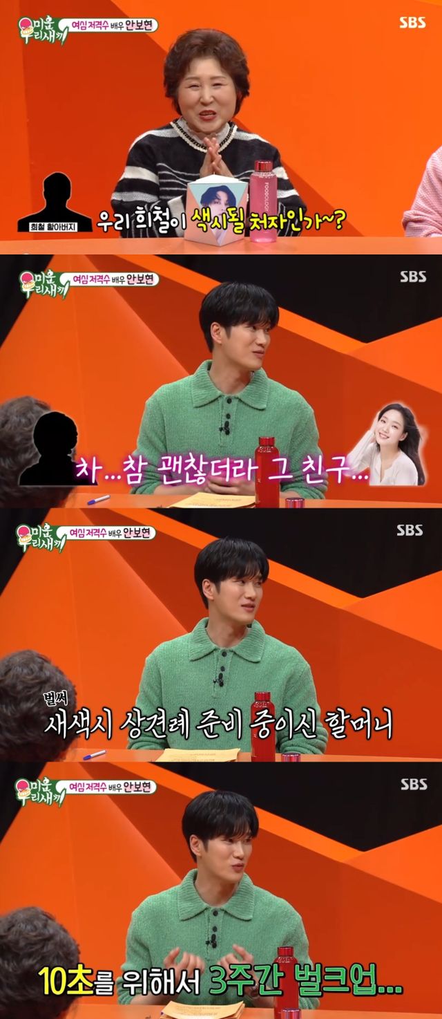 그런가 하면, 김희철 母는 김희철이 처음 드라마를 했을 때 할아버지가 "희철이 색시감이니?"라고 질문했던 일화를 풀기도 했다. 이에 안보현이 격하게 공감하자 신동엽은 할머니의 반응을 궁금해했다.