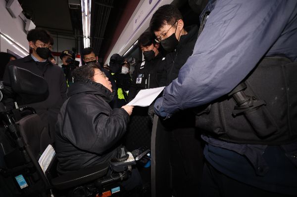 6일 뉴스1에 따르면 서울 남대문경찰서는 이날 오전 8시50분쯤 서울역에서 출근길 시위를 하던 전장연 비장애인 활동가 1명을 철도안전법 위반 등 혐의로 현행범 체포했다.