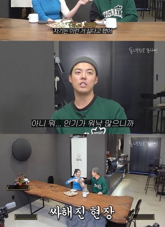 사유리는 "그때 강남이 자기는 이런 거 싫다고 했다더라"며 강남의 철벽을 증언, 강남은 "(내가) 인기가 너무 많으니까"라며 너스레를 떨어 분위기를 가라앉혔다.