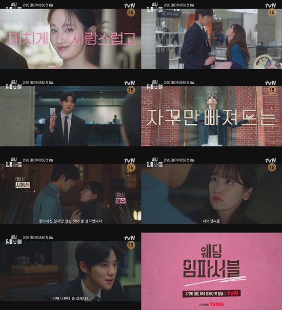 '미치게 사랑스러운' 로맨틱 코미디 '웨딩 임파서블'은 '내 남편과 결혼해줘' 후속으로 오는 26일 오후 8시 50분 첫 방송된다.
