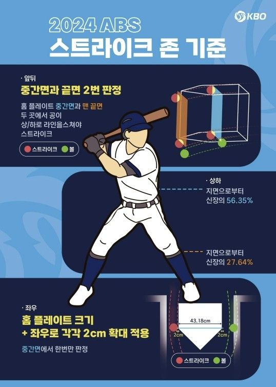 KBO는 6일 "2024시즌 주요 규정, 규칙 변경사항을 담은 안내자료를 10개 구단에 배포했다"고 발표했다. 이번 자료에는 2024시즌부터 시행하는 ABS 운영, 베이스 크기 확대, 수비시프트 제한에 관한 주요 사항이 포함됐다. 이밖에도 KBO리그에서 시범 운영을 실시하는 피치클락 규정, 퓨처스리그에 도입되는 투수 세 타자 상대 규정 또한 안내했다.