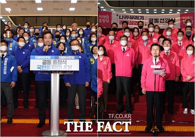 2020년 총선 당시 여야 모두 비례 전용 위성정당을 창당하며 비판을 받았다. 사진은 당시 이낙연 더불어민주당 대표(왼쪽)와 황교안 미래통합당 대표(오른쪽)./이새롬 기자