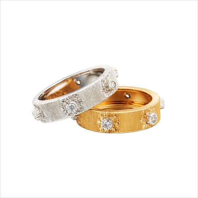 다이아몬드 장식을 더한 화이트골드 링과 옐로골드 링은 7백만원대, 모두