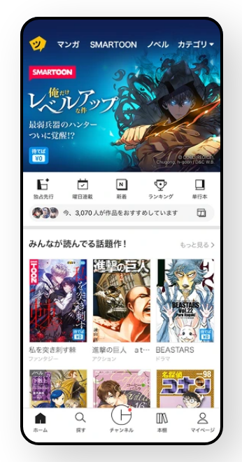 라인망가는 2013년 일본에 출사표를 던졌다. 단행본으로 만화를 소비하던 일본에 세로 스크롤 방식의 서비스를 선보였다. 이어 카카오픽코마가 2016년 만화 플랫폼 '픽코마'를 내놨다.