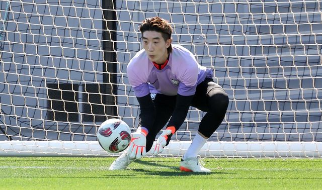 2023 아시아축구연맹(AFC) 카타르 아시안컵에 출전 중인 대한민국 축구대표팀 조현우가 지난달 24일(현지 시각) 카타르 도하 알 에글라 트레이닝 센터에서 훈련하고 있다. / 뉴스1