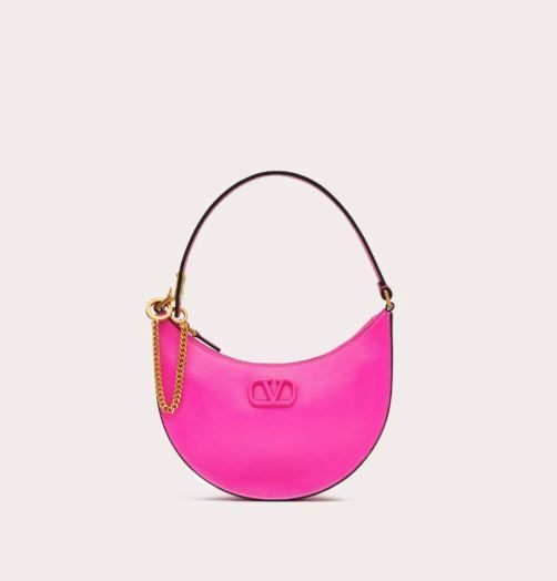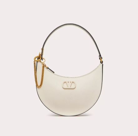 발렌티노 가라바니 브이 로고가 장식된 호보 백. 끈을 짧게 조정할 수도, 길게 조절할 수 있는 체인을 활용하여 숄더백으로, 둑 가지 연출이 가능합니다. 가격은 150만 원 대.