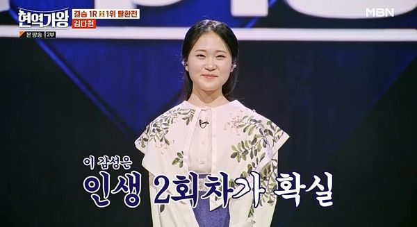김다현은 이날 무대로 연예인 판정단과 국민 판정단 합상 754점을 기록, 결승전 1라운드 최종 성적 5위에 오르며 2라운드 선전을 기약했다.