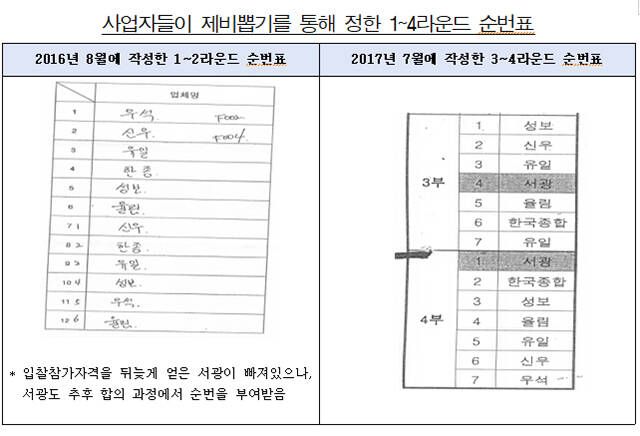이에 미리 정해진 낙찰예정업체가 낙찰받을 수 있도록 나머지 업체들은 일부러 높은 가격을 써내며 '들러리'를 서줬다.