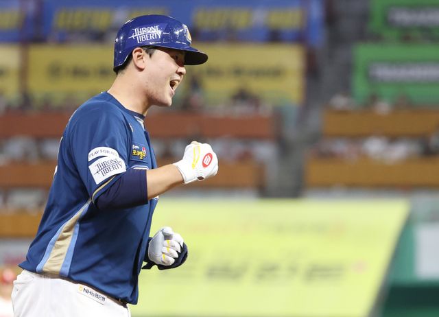 2023 KBO 프로야구 포스트시즌 SSG랜더스와 NC다이노스의 준플레이오프 2차전 경기가 23일 오후 인천SSG랜더스필드에서 열렸다. 8회초 무사 김형준이 솔로홈런을 치고 베이스를 돌며 환호하고 있다. 인천=김민규 기자