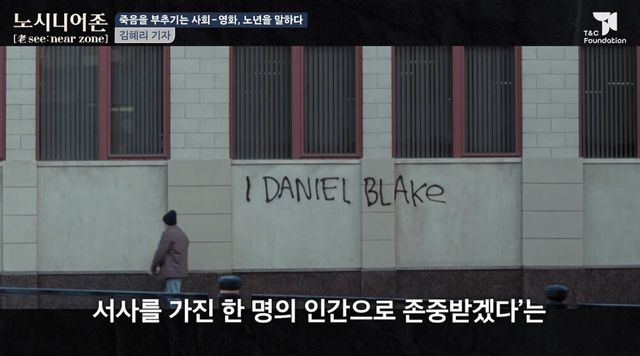 영화의 클라이맥스에서 다니엘은 한 건물의 벽에 ‘나, 다니엘 블레이크’라는 낙서를 남기기 시작한다. 이는 다니엘 본인이 ‘골칫거리 문제 집단 노년층이 아닌, 마땅히 존중받아야 할 개인’임을 내포하는 것으로 앞서 소개한 영화 ‘플랜 75’와 결을 같이 한다고 볼 수 있다.