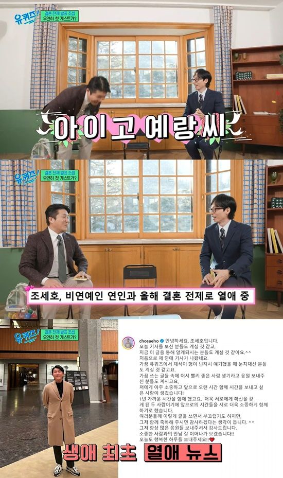 조세호도 "기사가 났고, 생각보다 기사가 늦게 나온 게 아닌가 싶다"고 결혼 전제로 열애를 하고 있다는 보도가 난 것에 대해 소감을 전했다.