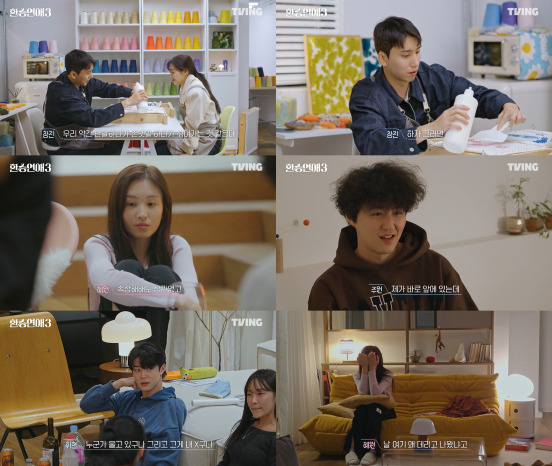 감정의 폭풍전야를 예고한 티빙 오리지널 ‘환승연애3’ 9화는 바로 오늘(9일) 낮 12시 티빙에서 독점 공개된다.