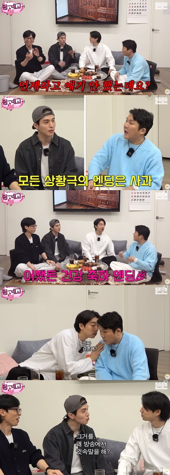 이어 이동욱은 "연애 이야기를 많이 하지 말라"고 경고했고, 유재석은 "(조세호) 결혼식 올거냐"고 물었다. 이에 공유는 "저는 그날 바쁠 거 같다"고 했고, 이동욱 역시 "저는 이전부터 알고 있었다. 결혼 이야기가 오가고 있다고 해서 나 그때 바쁜게 못가겠다고 했다. 근데 언제인지를 말 안했다"고 설명했다.