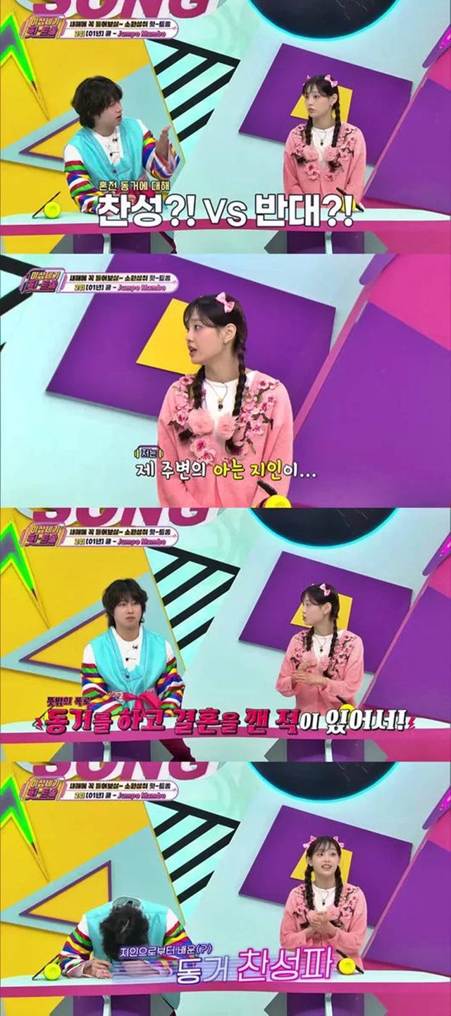 이어 'Jumpo Mambo’의 원제가 ‘동거’였다는 일화가 알려졌고, 츄는 "혼전 동거에 찬성하냐 반대하냐"는 질문에 “주변 지인이 동거하면서 결혼을 깬 적 있다. 그때 '역시 같이 살아봐야 하는구나'라고 느꼈다”라는 답했다.