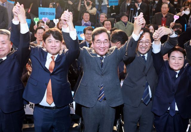 설을 하루 앞둔 9일 이준석 대표의 개혁신당, 김종민·이낙연 공동대표의 새로운미래, 금태섭·조성주 공동대표의 새로운선택, 이원욱·조응천 의원 중심의 원칙과상식이 통합을 선언하고 연휴 뒤 공동창당대회를 열기로 했다.