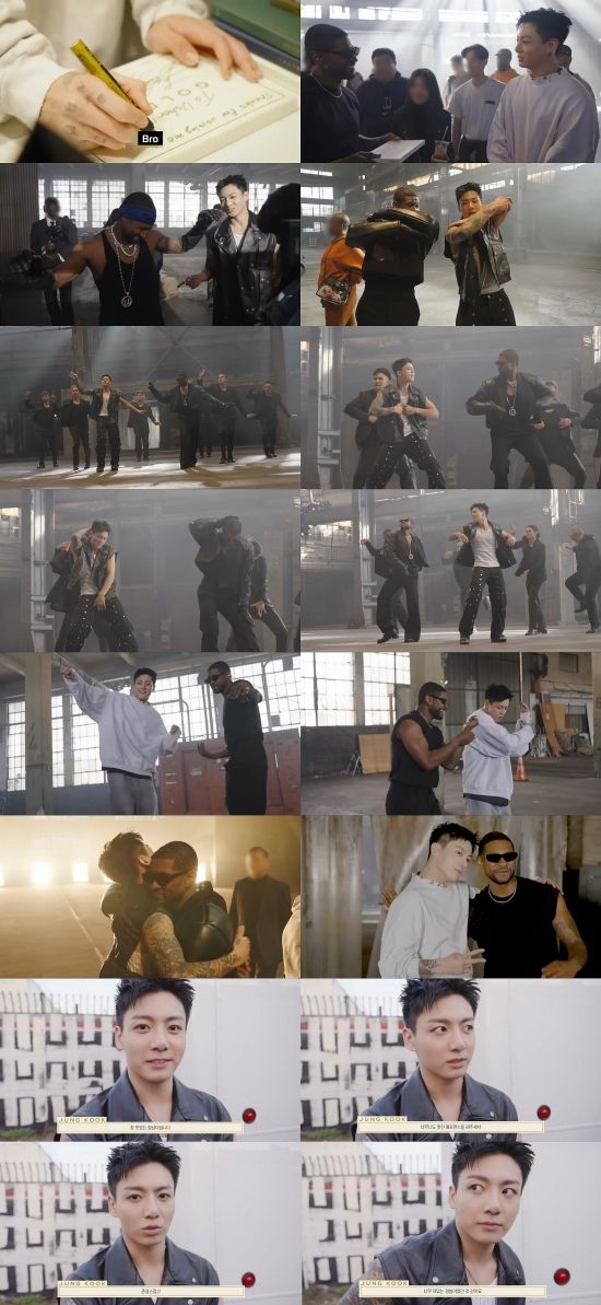 두 사람은 'Standing Next to You'의 퍼포먼스 준비를 위해 연습하는 과정에서도 특급 케미를 선보였다. 또한 정국과 어셔는 어셔의 히트곡 'Yeah!'에 맞춰 댄스 챌린지를 진행하는 모습으로도 눈길을 끌었다.