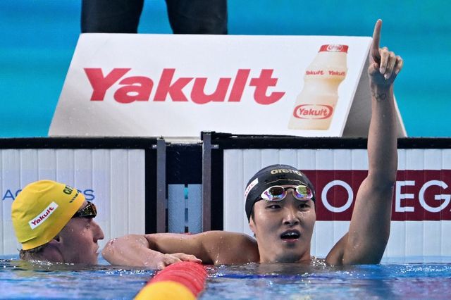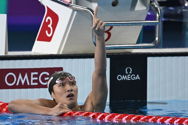 레이스를 마친 뒤 전광판을 확인한 김우민은 자신의 우승을 믿을 수 없다는 듯 다소 얼떨떨한 표정을 지었으나 이내 다른 선수들의 축하를 받고서야 미소를 지었다.