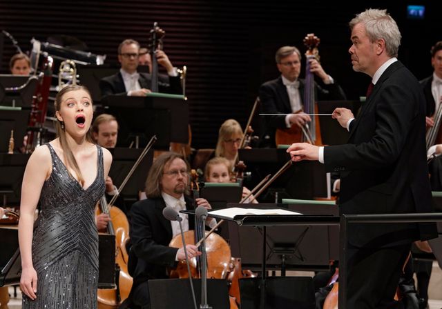 2019년 수상자 중 한 명인 요한나 월로스(Johanna Wallroth)가 핀란드 라디오 심포니 오케스트라(Finnish Radio Symphony Orchestra) 및 지휘자 한누 린투(Hannu Lintu)와 함께 노래하고 있다. 헤이키 툴리(Heikki Tuuli)의 사진 |