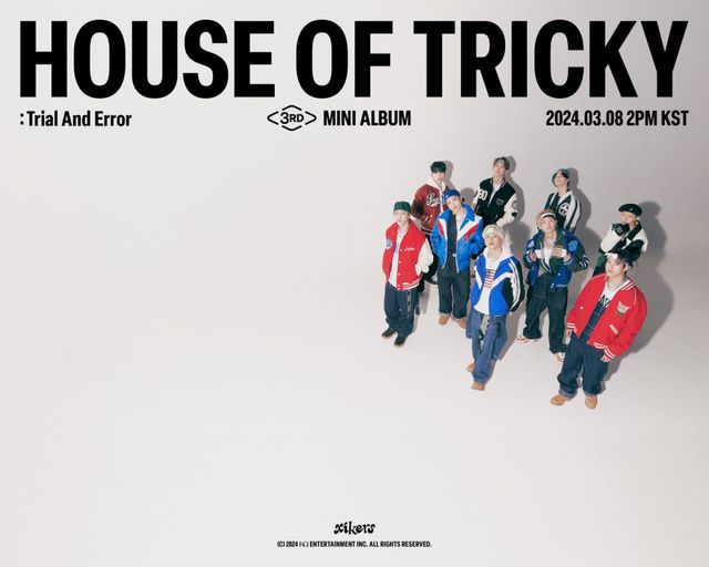 공개된 포스터에는 ‘2024.03.08 2PM KST’라는 문구와 함께 컴백 일자가 새겨져 눈길을 끈 가운데, 미니 3집의 앨범명인 ‘하우스 오브 트리키 : 트라이얼 앤 에러’(HOUSE OF TRICKY : Trial And Error)까지 공개되며 컴백 열기를 한층 더 달궜다.