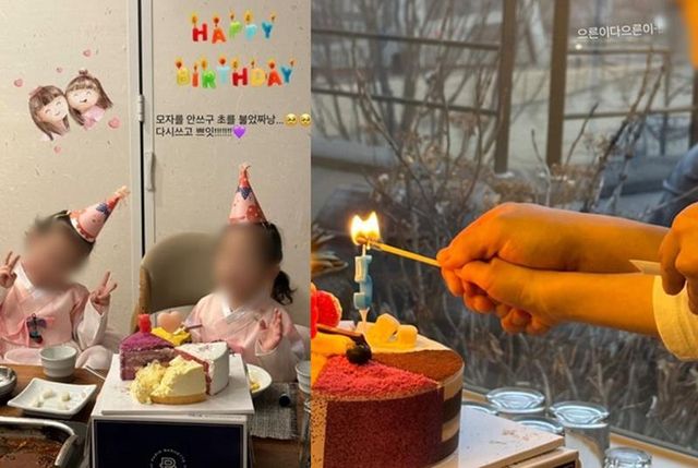 또 다른 사진에는 동생들 생일 케이크에 불을 붙이는 아들 모습이 눈길을 끈다. 율희는 "동생들 생일 초 켜주는 일곱 살 오빠. 어른이다”라며 애정을 드러냈다.