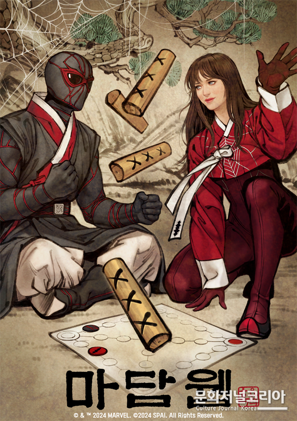 여기에 힘차게 윷이 던져진 상황 속, 미래를 볼 수 있는 능력을 가진 ‘마담 웹’이 마치 이번 놀이의 승부를 예측하고 있는 듯한 느낌을 주며 재미를 더한다. 또한 흑요석 작가가 구현한 전통적인 스타일로 재탄생한 두 인물들의 비주얼도 흥미를 자극한다.