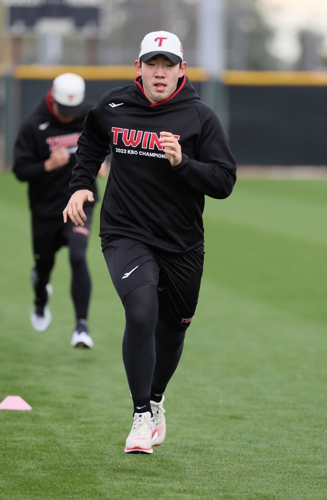 염경엽 LG 감독은 고우석, 함덕주 등 필승조 일부가 전력에서 이탈한 가운데 진우영의 1군 불펜 합류 가능성을 기대하고 있다. 그가 캠프 명단에 포함된 이유다. 진우영은 "스플리터 이외에 변화구를 더 장착하고 싶다. 커브를 연마 중인데, 임찬규 선배님과 케이시 켈리에게 적극적으로 다가가 배우려고 한다"고 말했다.